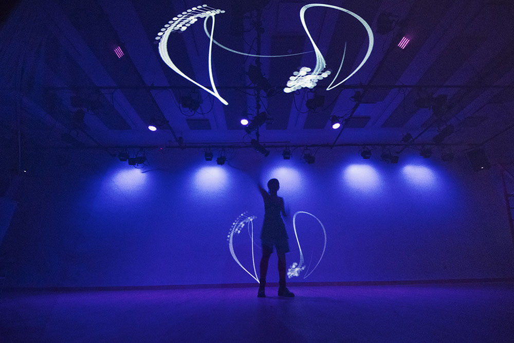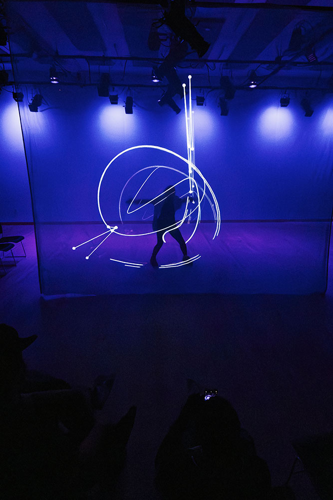 Future Stages, an evening of immersive and interactive performance, digital art, and installation. Comprised of interactive, digitally-driven new media pieces curated by and directed by Katherine Helen Fisher and produced by Caroline Haydon, Future Stages expands concepts of shared experience by exploring what it means to be in conversation with emergent technologies. As a collection, Future Stages researches the growing relationship between our bodies and the digital world, and offers attendees limitless opportunities to immerse themselves in vivid, interactive interfaces Credits